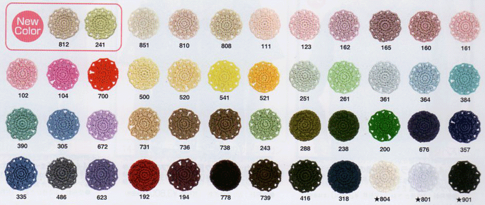 [素材] 綿100% [長さ・単位] 50g玉巻/約218m [使用針] かぎ針0〜2/0号 [必要玉数] 婦人プルオーバー7玉 ※このページの選択肢にない色は、こちらからご注文ができます。